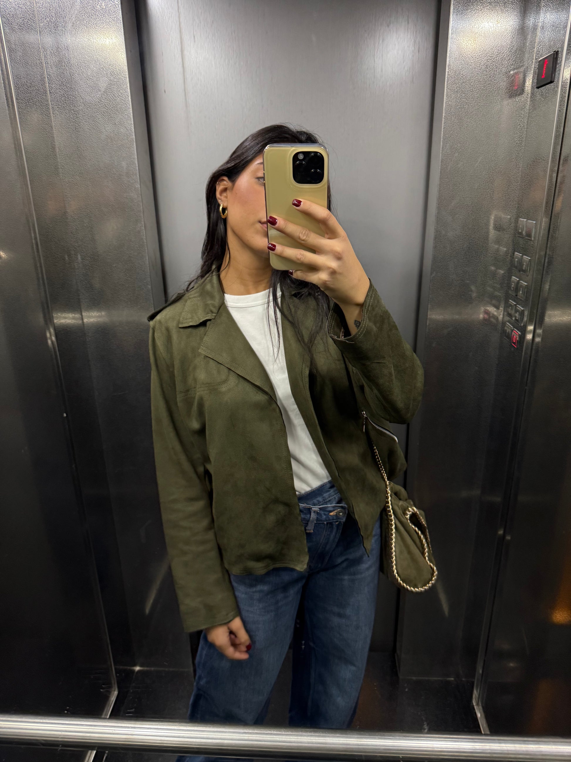 Suede-touch open jacket with zipper pockets and a relaxed, modern cut. Adds effortless edge to any look.